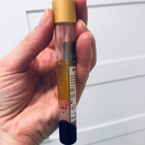 Ett blodprov tas från ditt armveck. Provröret med blod centrifugeras för att skilja på plasman med mycket blodplättar (trombocyter, growth factors) från resten av plasman och röda blodplättar.